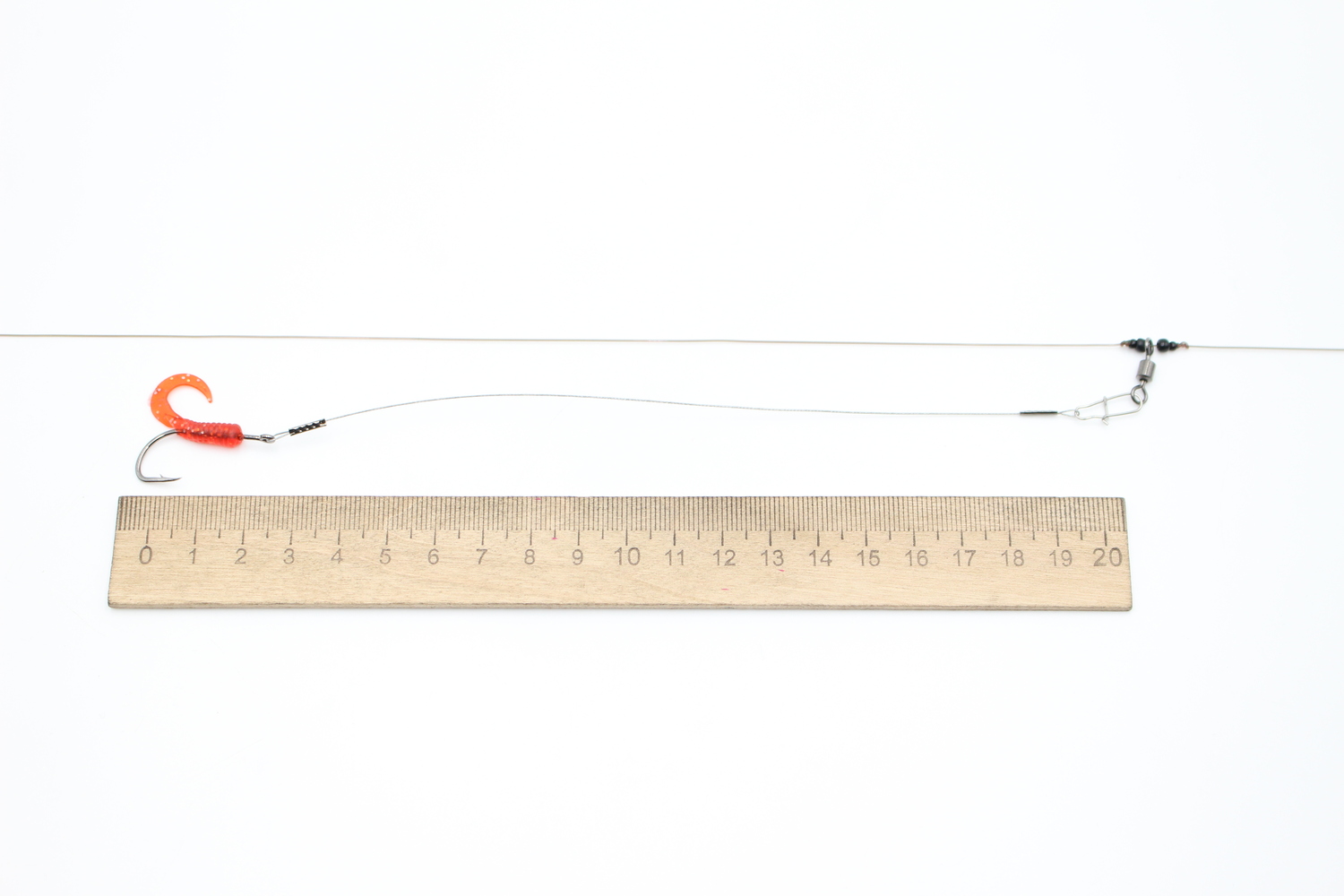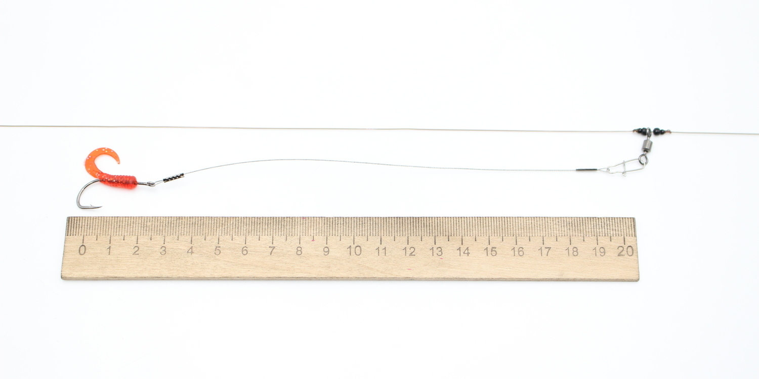 Донка резинка — грузило заводите с помощью лодки на 40-50 метров от берега. В наборе крючки на хищную рыбу №2 (судак, жерех, щука, сом, чехонь, форель), крючки на мирную рыбу №8 (карась, лещ, плотва, карп, сазан). Дорожка 5 метров, расстояние между крючками 1 метр. На данную снасть можно ловить в стоячей воде и на умеренном течении.